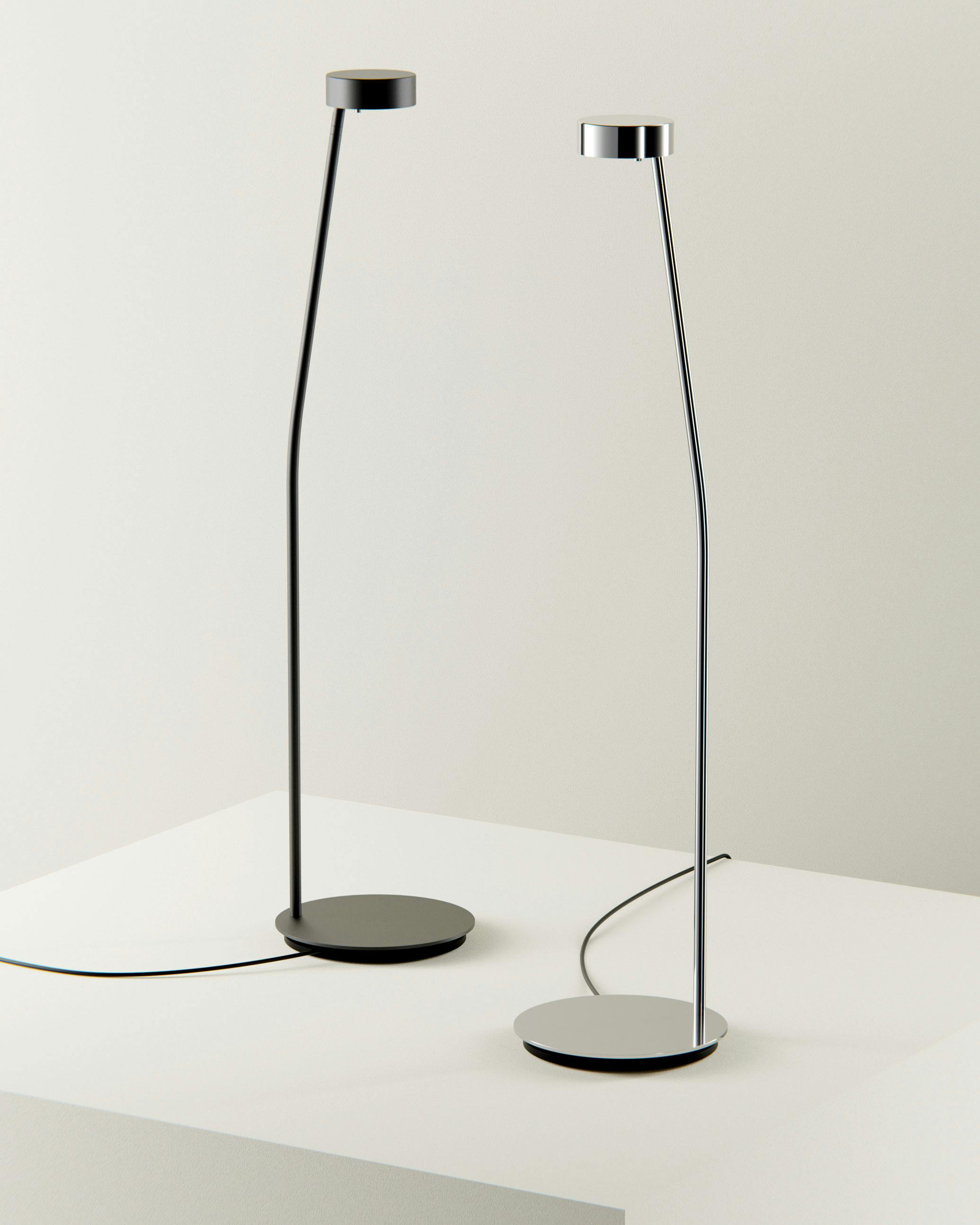 Ojigi is both a table and reading lamp, characterized by a fine and delicate shape that gracefully bends toward what it is meant to illuminate. A kind gesture, reminiscent of a Japanese bow, it welcomes the moments of our daily life. A jointed head and a rotating base allow for intuitive and flexible interaction. Designed by Matteo Bordignon.